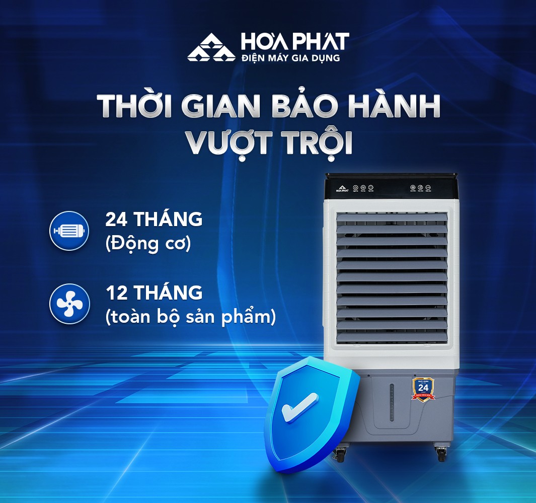 Với thời gian bảo hành vượt trội lên tới 24 tháng (bảng mạch, động cơ quạt, động cơ đảo gió, trục động cơ đảo gió) và 12 tháng (Điều khiển từ xa, bơm nước, phao, tụ điện, công tắc mở, công tắc điều khiển tốc độ. Không bảo hành phần nhựa như vỏ, nắp, cánh đảo gió), Máy làm mát không khí HPCF1-052 chiếm được lòng tin và sự an tâm của người tiêu dùng. Điều này giúp người dùng an tâm sử dụng sản phẩm và có thể bảo dưỡng, sửa chữa kịp thời mà không tốn chi phí nào nếu gặp lỗi do nhà sản xuất.